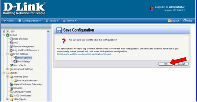 Подождите 15 секунд, пока новые настройки Межсетевого экрана вступят в силу. Настройка DHCP-сервера завершена.