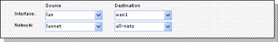 Зайдите Rules -> IP Rules -> lan_to_wan1.