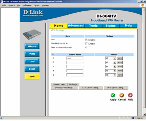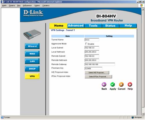 В этом разделе содержится информация о том, как настроить и использовать технологии, указанные выше. Более детальную информацию обо всех параметрах настройки IPSec на маршрутизаторе DI-804HV можно получить в руководстве пользователя.