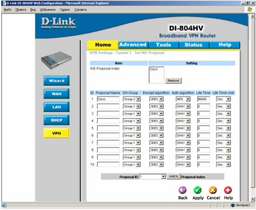 Страница VPN Settings - Tunnel 1 - Set IKE Proposal