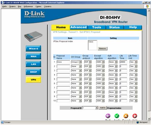 4. Страница VPN Settings - Tunnel 1 - Set IPSEC Proposal