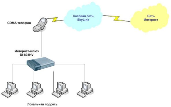 Вопрос: Можно ли с помощью оборудования D-Link подключить локальную сеть к интернет через телефон компании SkyLink и как это сделать?