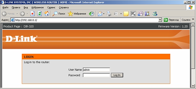 1. Зайдите на web-интерфейс DIR-xxx, набрав в адресной строке браузера: 192.168.0.1