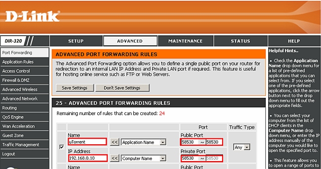 Настройка клиента uTorrent на маршрутизаторах серии DIR-ххх c помощью Port Forwarding (Переадресация портов)