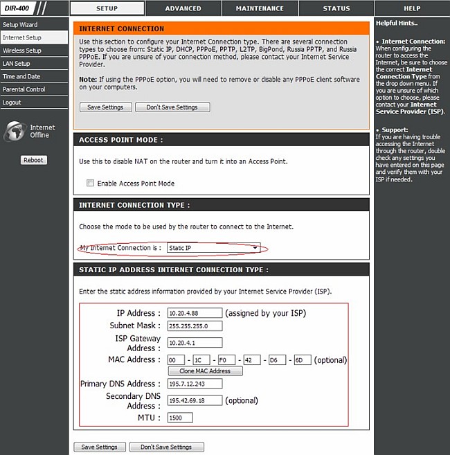 Вопрос: Настройка Static IP соединения на примере DIR-400