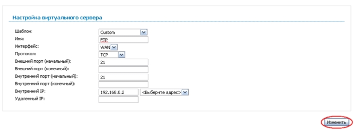 Интерфейс– необходимо указать интерфейс, для которого пробрасываются порты.