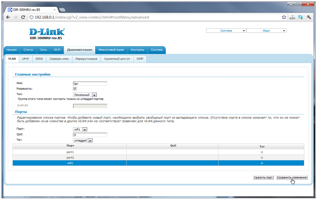 В результате получаем следующую картину (в VLAN lan объявлены только port1 и port2, соответствующие разъемам LAN на задней панели устройства):