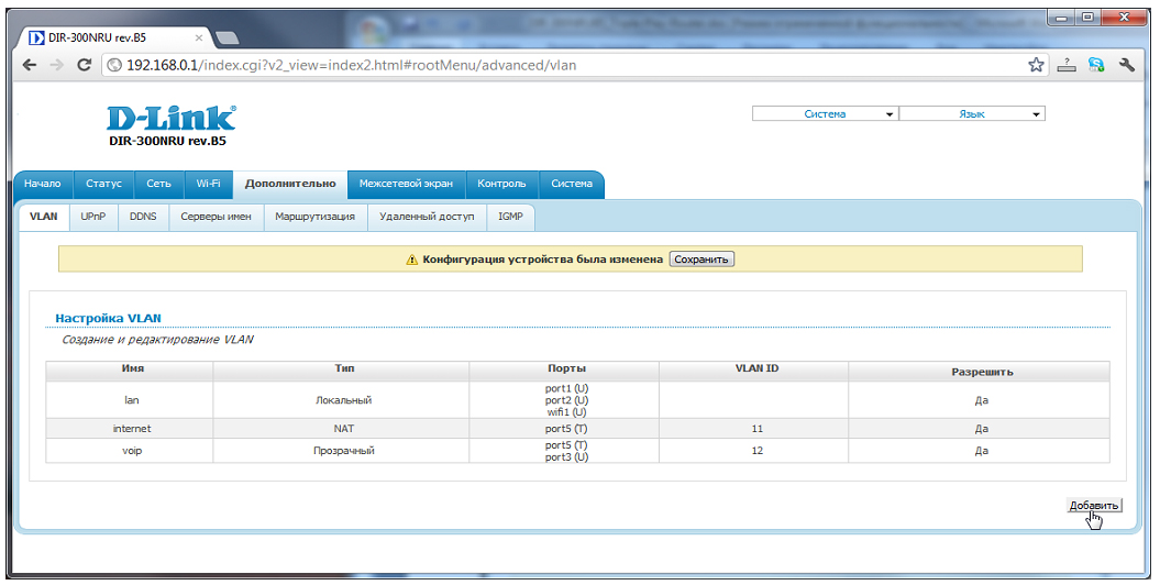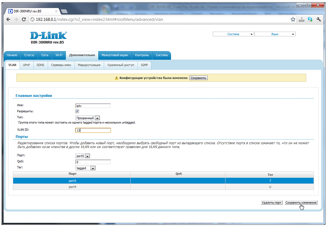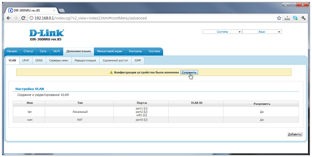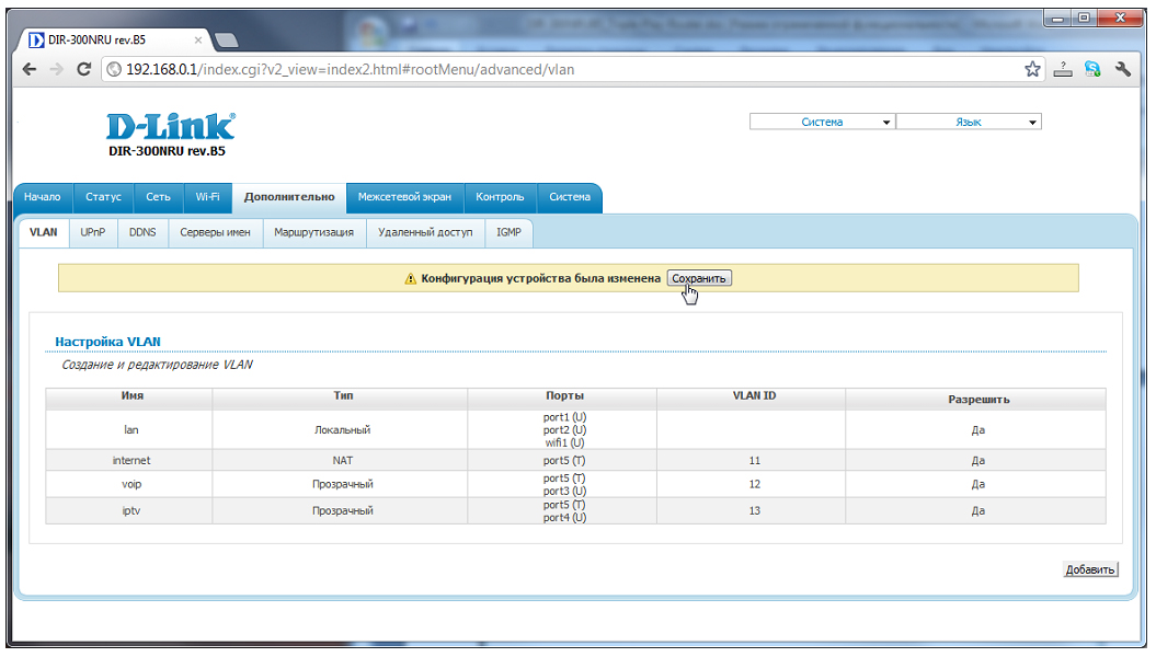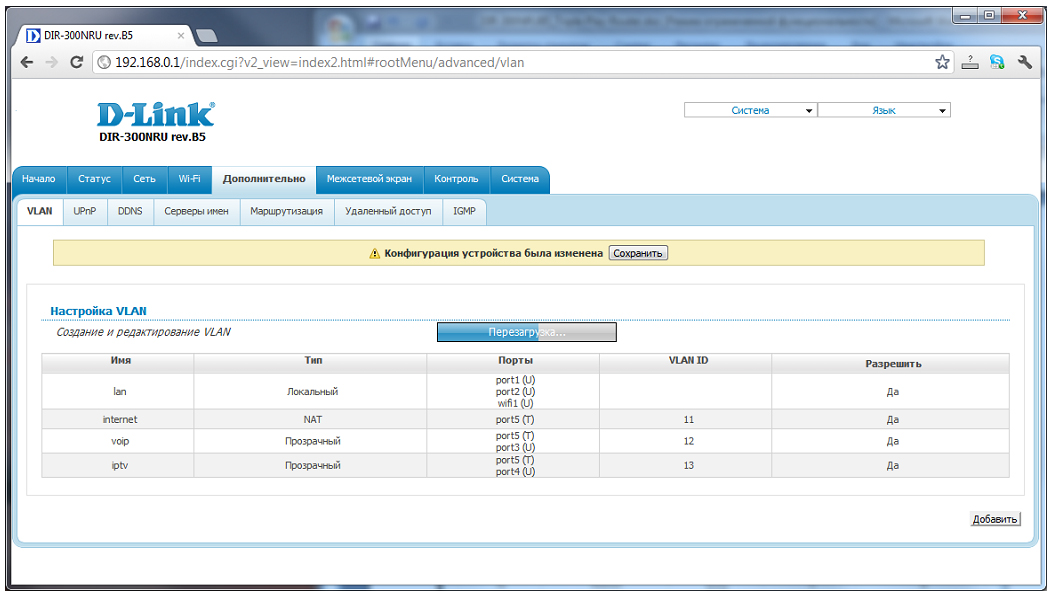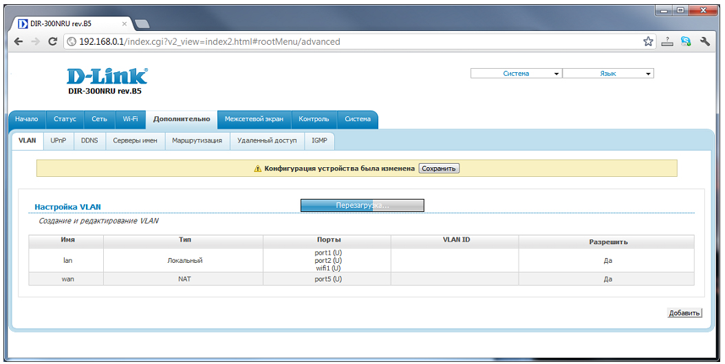 Сохраняем изменения (кнопка «Сохранить») и ждем завершения перезагрузки устройства: