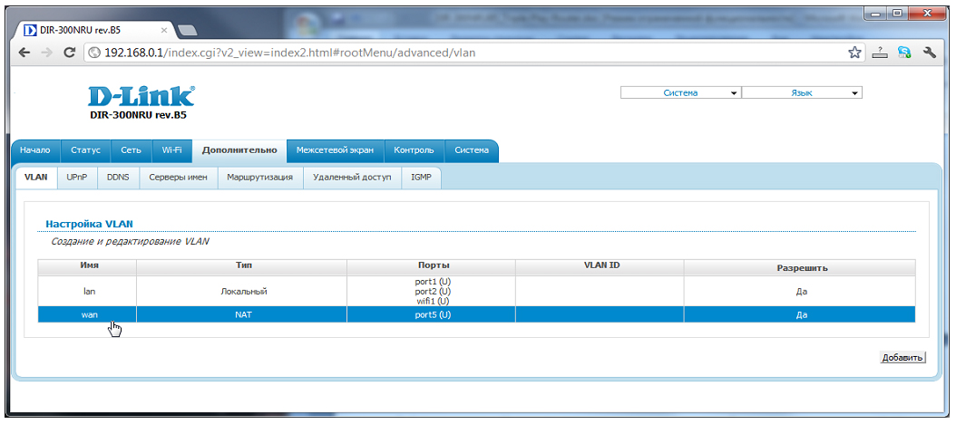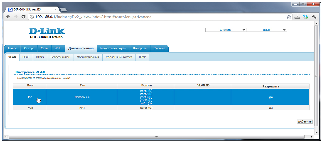 Переходим в меню «Дополнительно» - подменю «VLAN». Выбираем VLAN с именем lan.