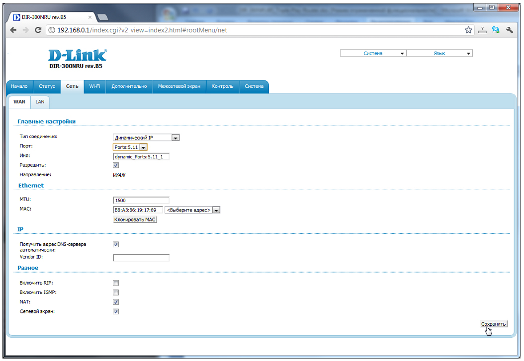 Весь процесс конфигурирования в этом примере приведен для роутера DIR-300/NRU/B5 с пошивкой версии 1.3.3.