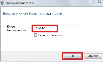 Введите ключ и нажимаете ОК. Если ключ введен верно, произойдет подключение к сети.