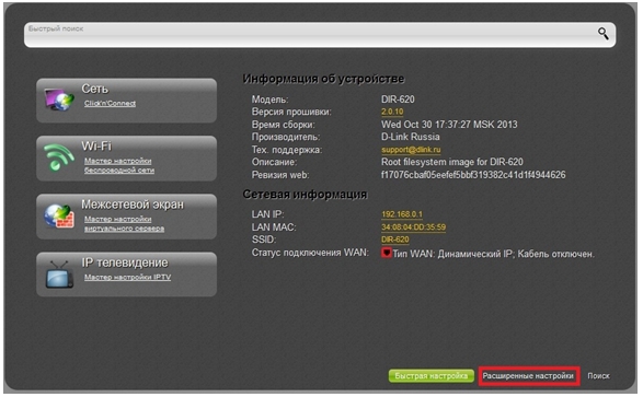 3. Перейдите на страницу Расширенных настроек.