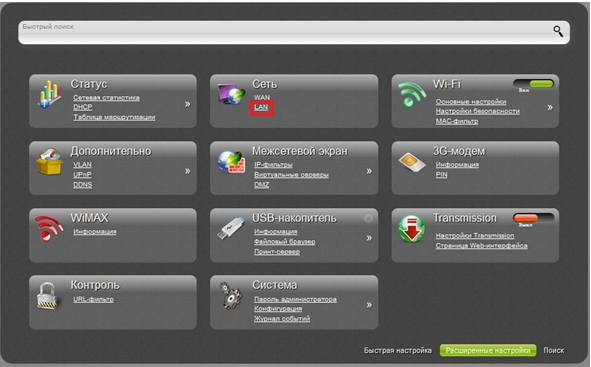 4. В разделе Сеть нажмите ссылку LAN.
