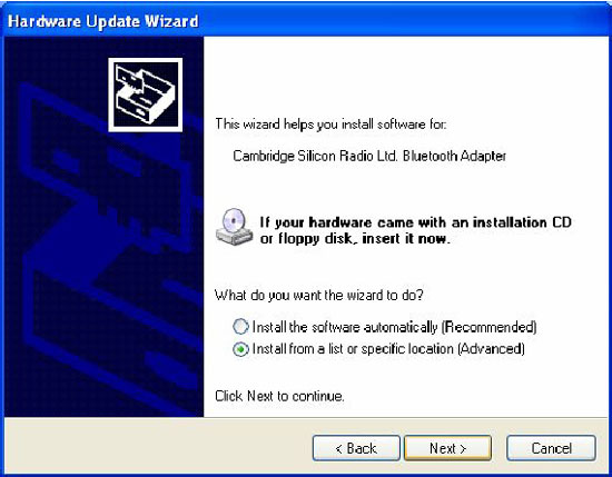Вы увидите окно Мастера Установки оборудования Выберите "Установить из указанного места" и нажмите "Далее".