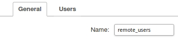 На вкладке General в поле Name укажите remote_users.