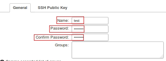 Confirm password: test (повторить ввод пароля)