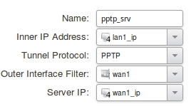 add Interface L2TPServer pptp_srv Interface=wan1 IPPool=vpn_pool ServerIP=InterfaceAddresses/wan1_ip IP=InterfaceAddresses/lan1_ip TunnelProtocol=PPTP