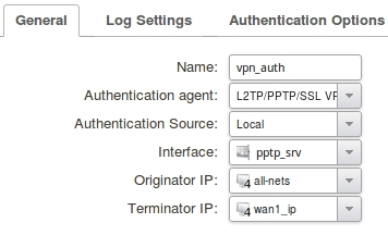 Настройка PPTP/L2TP сервера и правила аутентификации.