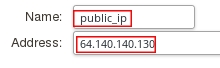 Создадим объект с внешним IP адресом 64.140.140.130 и с приватным IP адресом 192.168.10.20