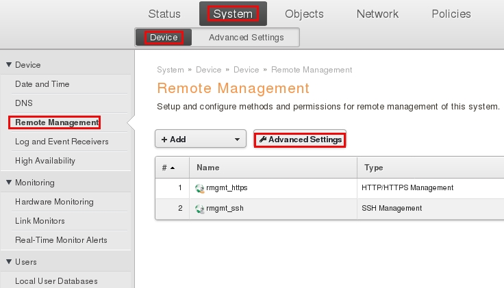 Пройдите в web интерфейсе System → Device → Remote Management и нажмите кнопку Advanced settings