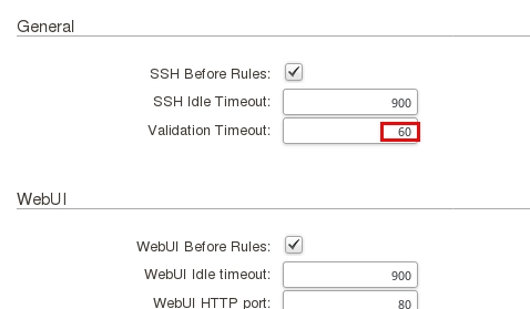 Установите необходимое значение в поле Validation Timeout, в данном примере увеличиваем время до 60 секунд.