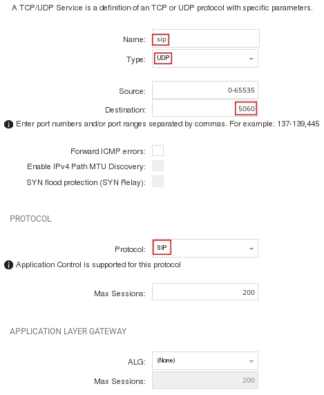 add Service ServiceTCPUDP sip DestinationPorts=5060 Type=UDP Protocol=SIP