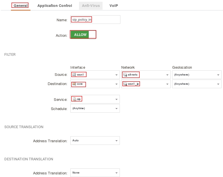 add IPPolicy Name=sip_policy_in Service=sip SourceInterface=wan1 SourceNetwork=all-nets DestinationInterface=core DestinationNetwork=InterfaceAddr