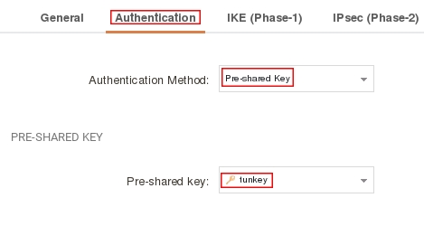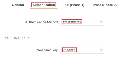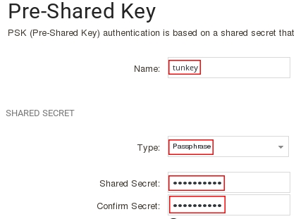 Пройдите в Web интерфейсе Objects → Key Ring, нажмите кнопку Add и выберите Pre-Shared Key