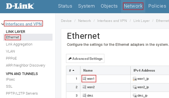 Пройдите в web интерфейсе в Network → Interfaces and VPN → Ethernet → wan1
