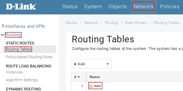 Пройдите в Web интерфейсе Network → Routing → Main
