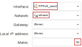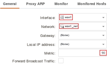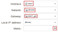 | Interface: wan1 Network: all-nets Gateway: wan1_gw Metric: 90 |