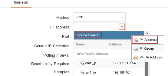 В поле IP Address выберите Сreate Object → IP4 address.