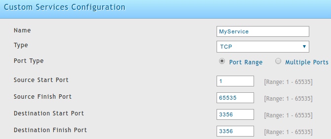 Для перенаправления портов необходимо создать свой сервис (преднастроеный протокол), который уже будет использоваться в правиле. Для создания сервиса необходимо знать, какой протокол (TCP или UDP) и какие порты использует программа для которой будет создаваться. В примере будет рассмотрено создание сервиса для «виртуальной» программы которая использует протокол TCP и порт 3356