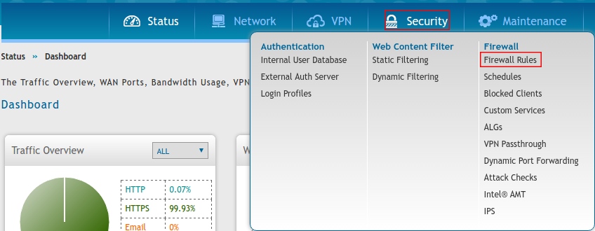 Пройдите в Web интерфейсе Security → Firewall Rules.