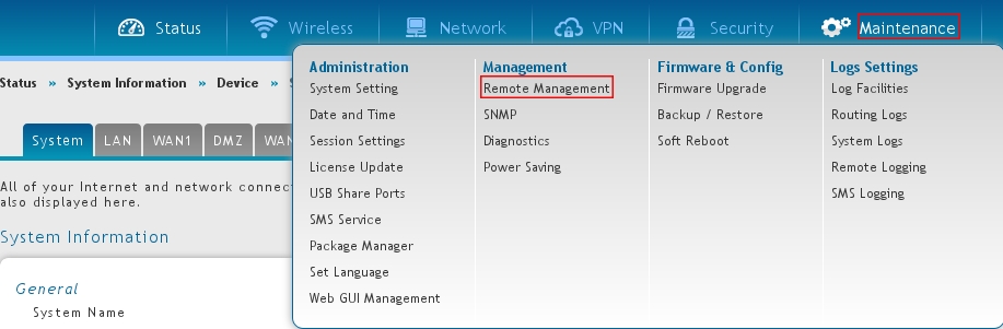 Пройдите в web интерфейсе Maintenance → Remote Management.