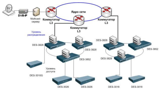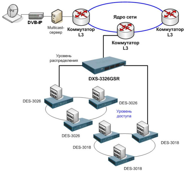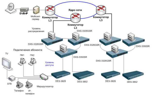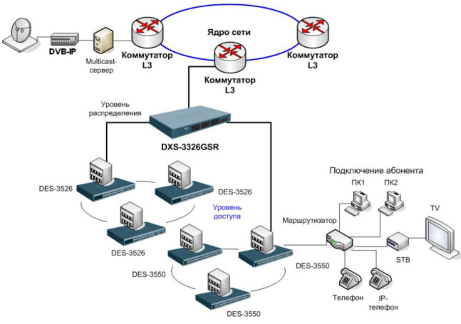 Схема применения в сетях провайдеров услуг в качестве устройства уровня распределения: