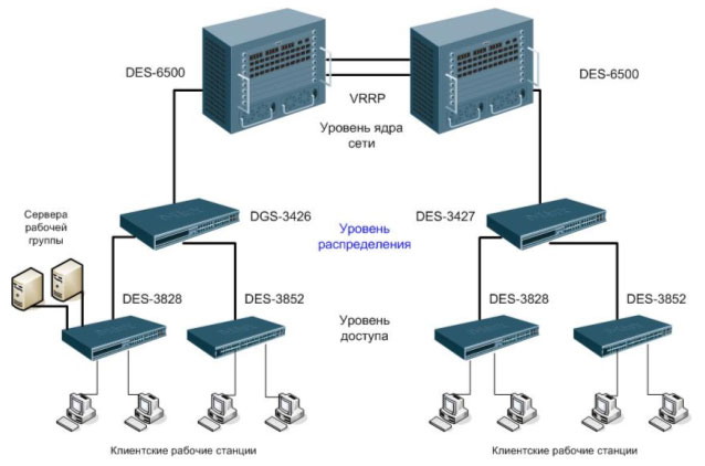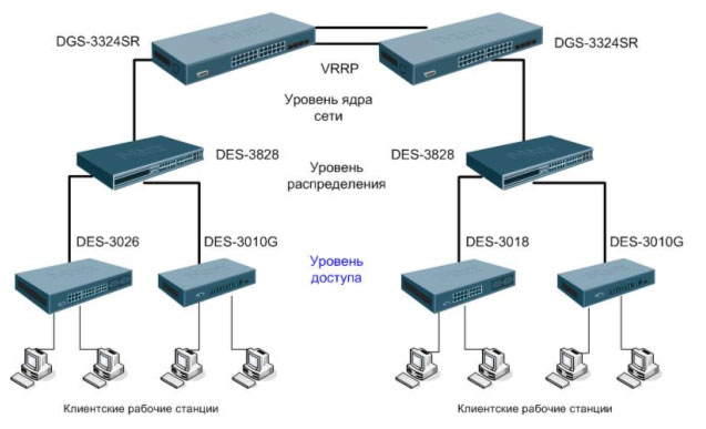 Схема применения в корпоративных сетях в качестве устройства уровня доступа: