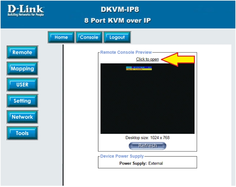 Шаг 2. Запустите удаленную консоль нажав Click to Open на стартовой странице.